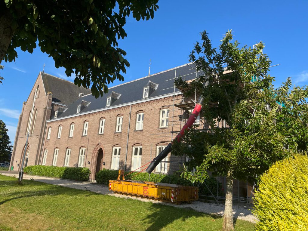 Met grote vreugde en dankbaarheid kondigen wij u aan dat op 19 september jl. de werkzaamheden van de tweede fase van het vervangen van de leien zijn beëindigd. Dus de voorkant (west) en de zijkant (zuid) zijn nu klaar. Nu beginnen we aan de derde fase (oost)