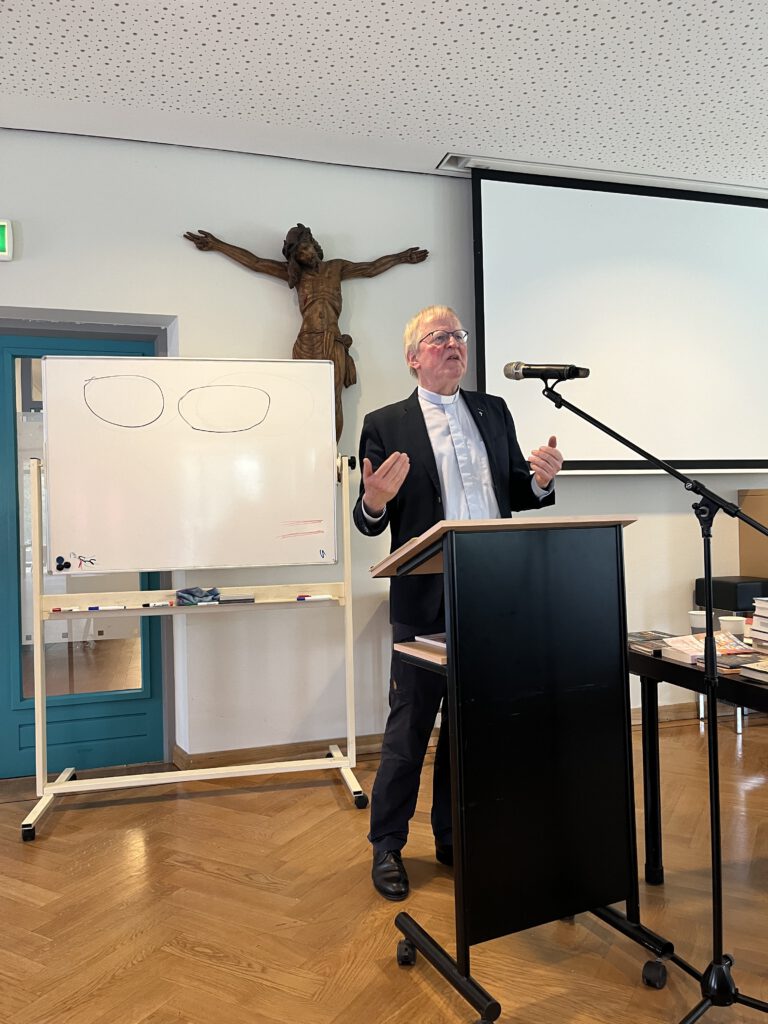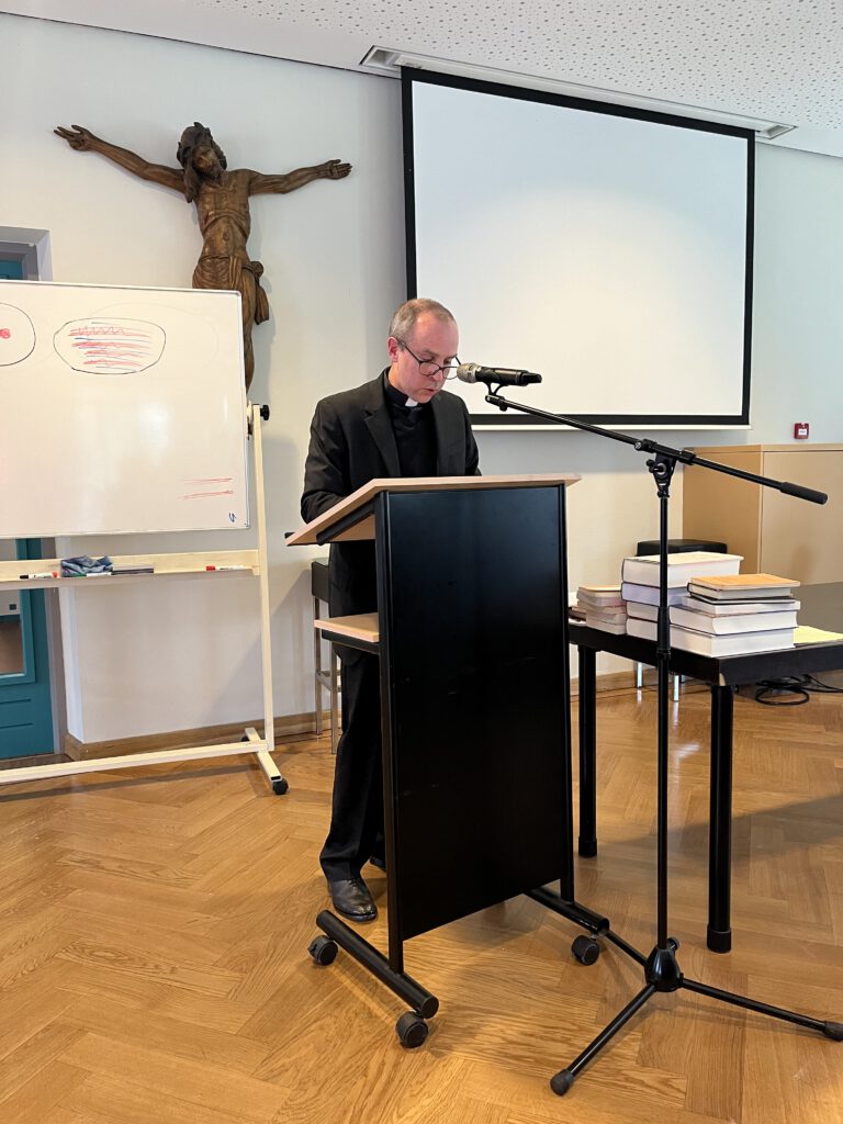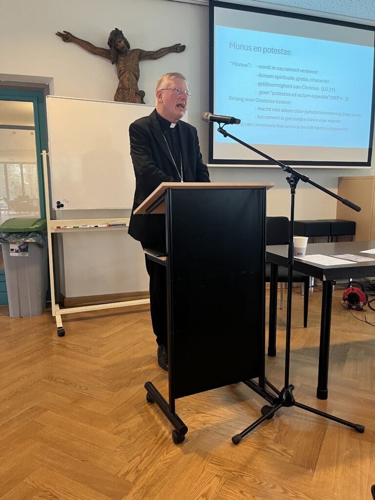 Vervolgens waren er drie lezingen over het concilie: eerst door onze bisschop, mgr. dr. J.W.M. Hendriks, over ‘Vaticanum II over munus en potestas bij de bisschopswijding’; vervolgens een lezing door dr. C. van Vliet, priester uit het bisdom Rotterdam en jarenlang docent aan onze opleiding, over ‘Vaticanum II als geschenk en opgave: synodaliteit als een van de vruchten van het concilie’; en ten slotte een lezing door dr. J. Vergara, priester van het Opus Dei in Maastricht, over de roeping van de leken in de Kerk en in de wereld.